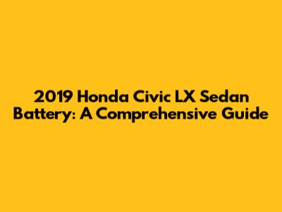 2019 Honda Civic LX Sedan Battery: A Comprehensive Guide