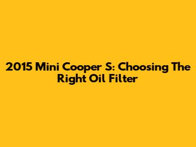 2015 Mini Cooper S: Choosing The Right Oil Filter