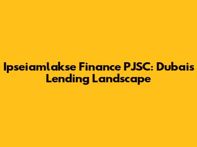 Ipseiamlakse Finance PJSC: Dubai's Lending Landscape