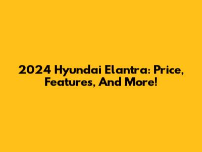 2024 Hyundai Elantra: Price, Features, And More!