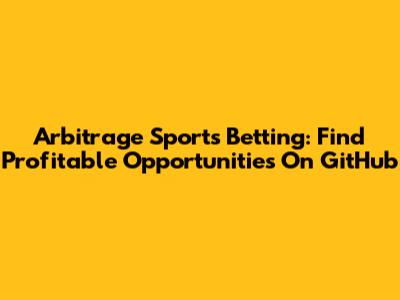 Arbitrage Sports Betting: Find Profitable Opportunities On GitHub