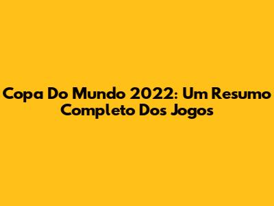 Copa Do Mundo 2022: Um Resumo Completo Dos Jogos