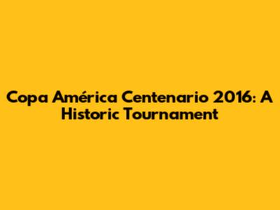 Copa América Centenario 2016: A Historic Tournament