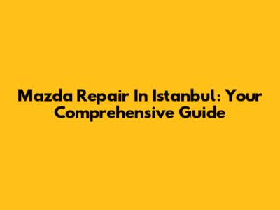 Mazda Repair In Istanbul: Your Comprehensive Guide