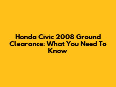 Honda Civic 2008 Ground Clearance: What You Need To Know