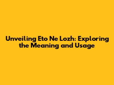 Hey everyone, let's dive into a phrase that might have popped up in your Russian language journey: "Eto Ne Lozh." If you've been curious about its translation, you're in the right place! This phrase is a straightforward yet powerful way to express something, and understanding its nuances can really boost your communication skills. So, grab a cup of coffee, and let's unravel the meaning, usage, and cultural context of "Eto Ne Lozh." It's going to be a fun ride, I promise!
