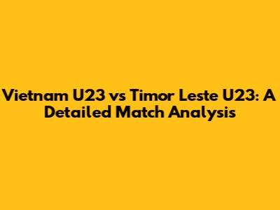 Hey guys, let's dive deep into the exciting match between Vietnam U23 and Timor Leste U23! This game, like all football matches, is filled with anticipation and passion. Understanding the dynamics of this clash requires a closer look at team strategies, key players, and the overall game flow. So, buckle up, because we're about to break down everything you need to know about this match, from the pre-game buzz to the final whistle. Let's unpack the key elements that shaped the outcome and the overall feel of the game. Get ready for some fantastic insights and in-depth analysis of Vietnam U23 and Timor Leste U23! This analysis will not only look at the score but also delve into the tactical approaches, the performance of individual players, and the critical moments that defined the game. We'll explore how each team's strengths and weaknesses played out on the field and how these elements impacted the final result. From the initial lineup choices to the substitutions made during the match, we will cover every aspect. This detailed examination aims to provide a comprehensive understanding of what happened on the field, which will help us appreciate the skill, strategy, and sheer determination that define this sport. Moreover, the importance of these matches extends beyond the immediate result. They are crucial for player development, team cohesion, and the strategic planning of future tournaments. Understanding the nuances of such games is crucial for fans, coaches, and anyone interested in the beautiful game of football. This match is a perfect example of the global reach and emotional power of football, where every pass, tackle, and goal tells a story. We will delve into how each team prepared, analyzing tactics and key personnel. Let's start with a look at their recent performances and the team's strategies.