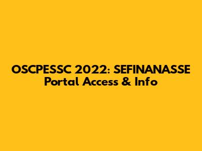 OSCPESSC 2022: SEFINANASSE Portal Access & Info