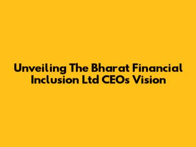 Unveiling The Bharat Financial Inclusion Ltd CEO's Vision
